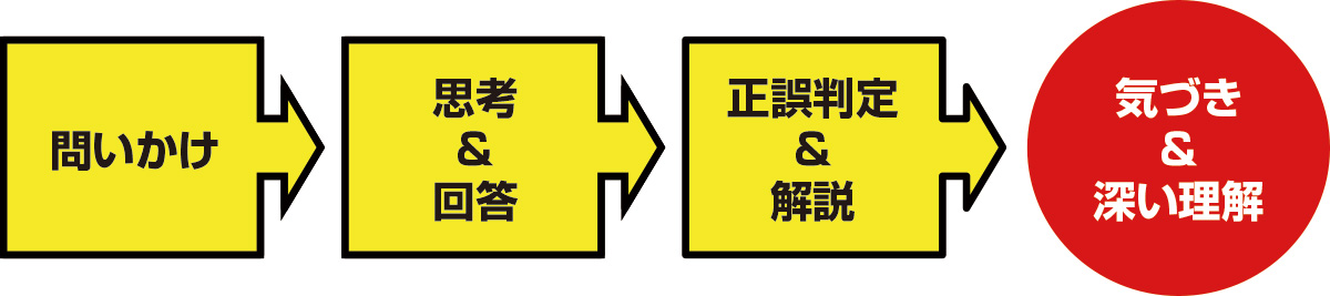 [設問] →[回答]→ [解説]の繰り返しで、完全理解&定着を目指す。